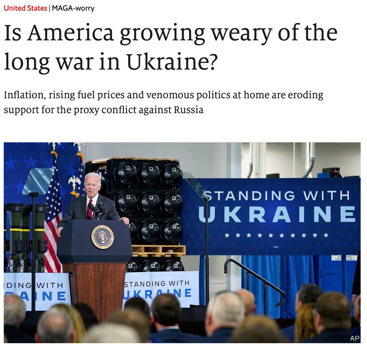 ❗️ The Economist в статье «Америка устала от войны в Украине?». В публикации говорится, что, хотя президент Джо Байден обещал поддерживать Украину столько, сколько потребуется, его цели остаются неясными. Если осенью на промежуточных выборах в Конгресс победят молодые республиканцы, помощь может вообще иссякнуть.