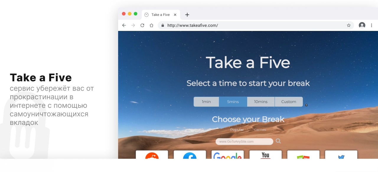 Сервис Take a Five убережёт вас от прокрастинации в интернете