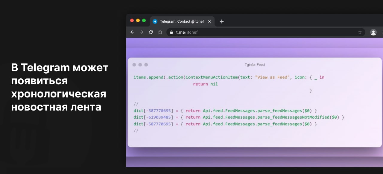 На данный момент подробностей очень мало, ведь о возможном будущем изменении нам «сообщают» лишь несколько строчек кода. Однако уже сейчас можно понять, что, скорее всего, новостная лента Telegram будет состоять из постов каналов, на которые пользователь ранее подписался сам. То есть будет необязательно просматривать каждый канал по очереди — все посты из них будут хронологически размещены в одной ленте.