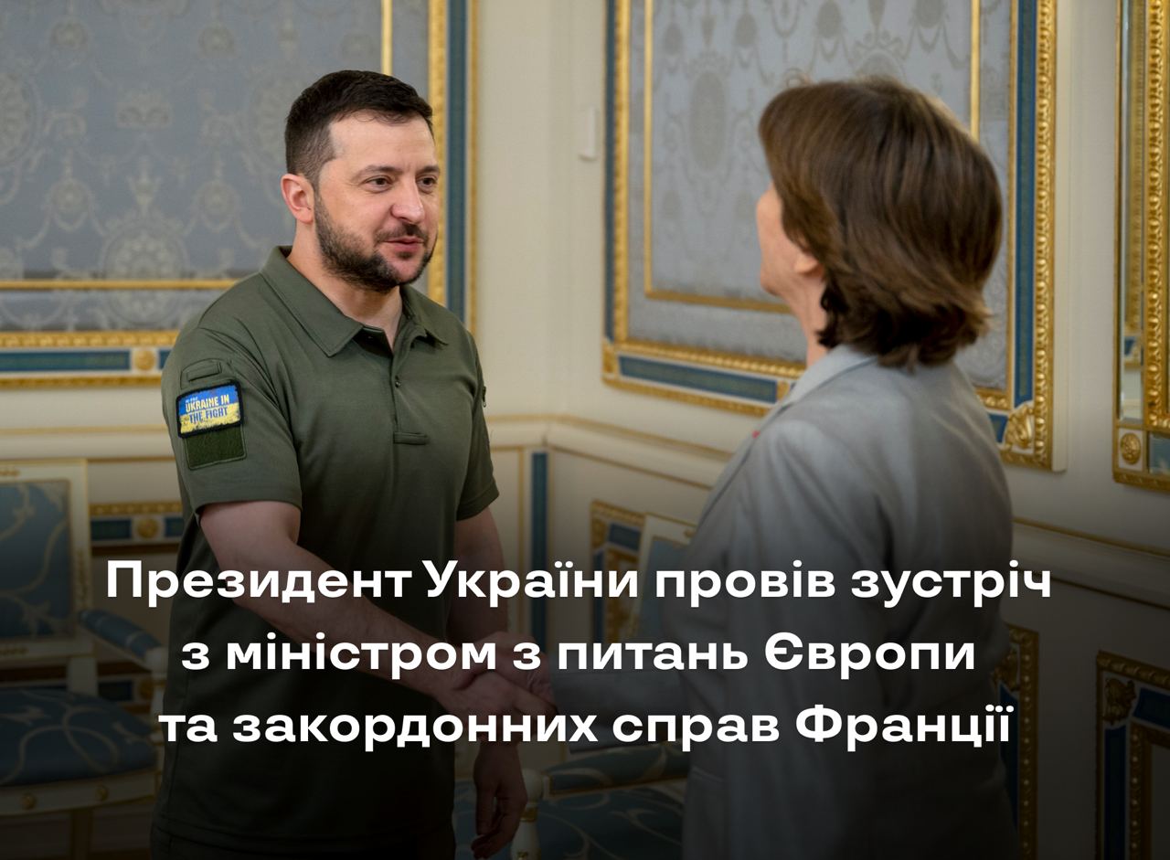 Президент Володимир Зеленський прийняв міністра з питань Європи та закордонних справ Франції Катрін Колонну, яка перебуває в Україні з візитом.