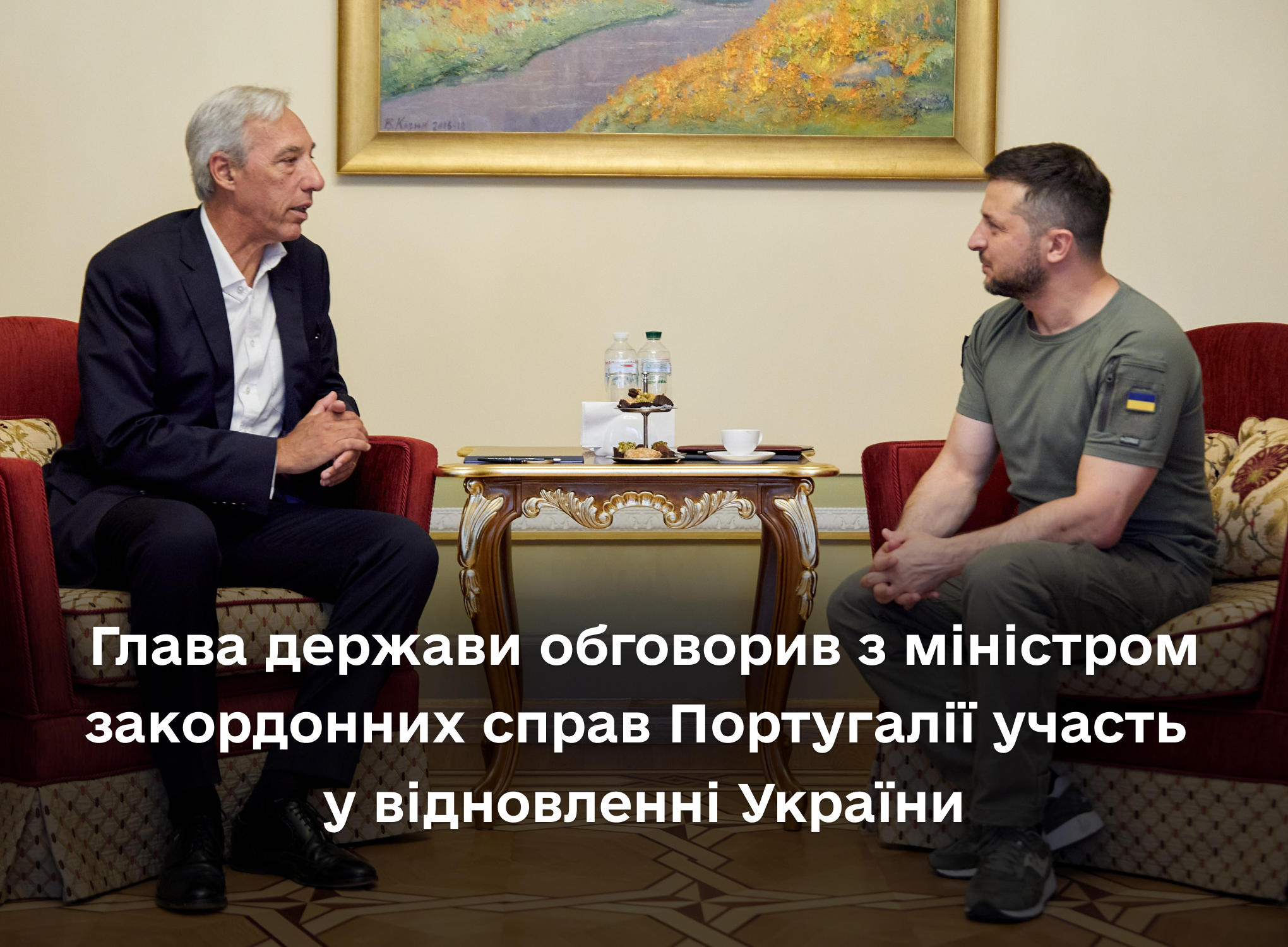 Президент України Володимир Зеленський провів зустріч з міністром закордонних справ Португалії Жоау Гомешем Кравінью в межах його візиту в Україну.