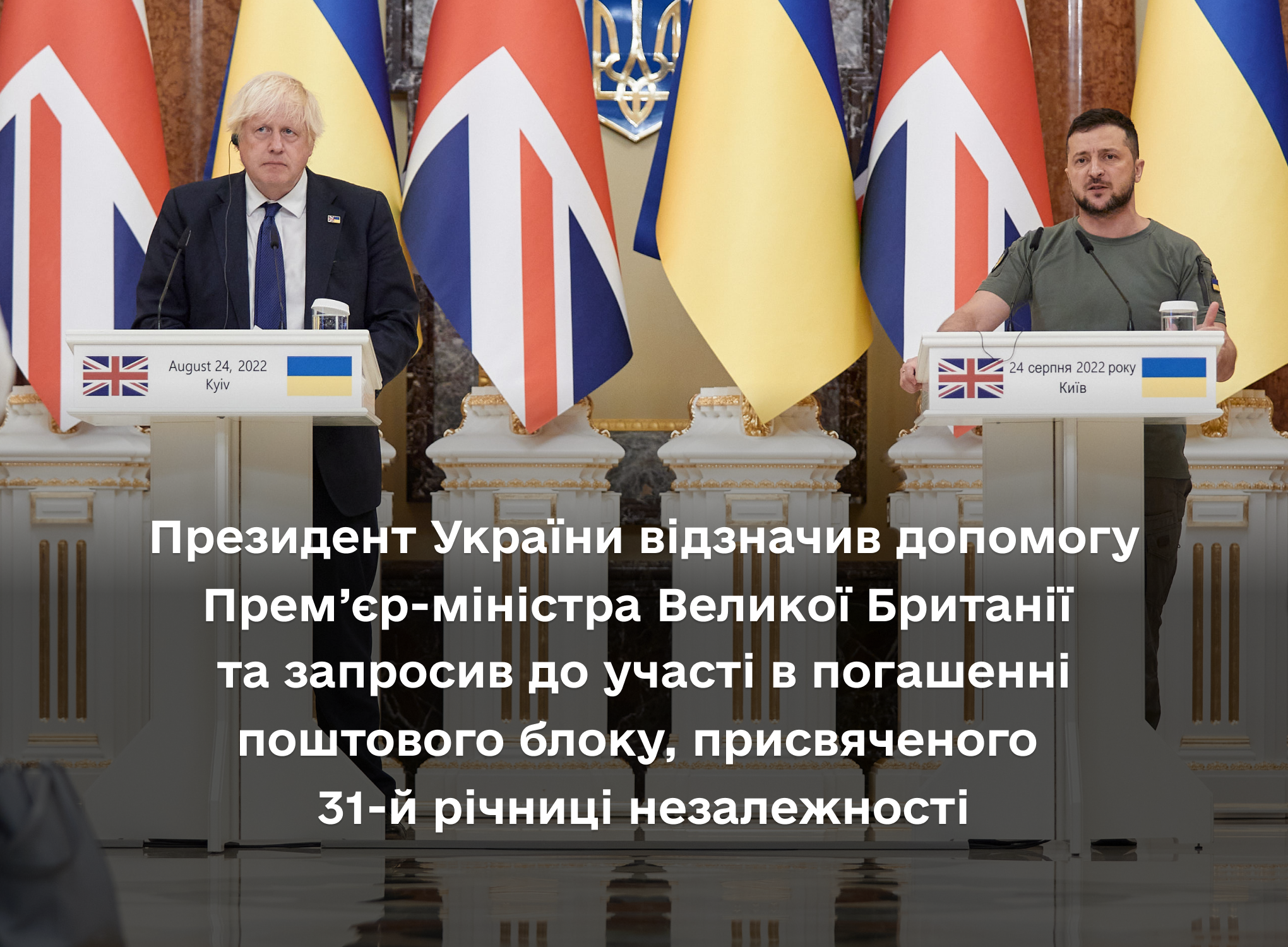 Президент Володимир Зеленський провів зустріч з Прем’єр-міністром Великої Британії Борисом Джонсоном, який прибув з візитом до нашої держави з нагоди Дня Незалежності України.