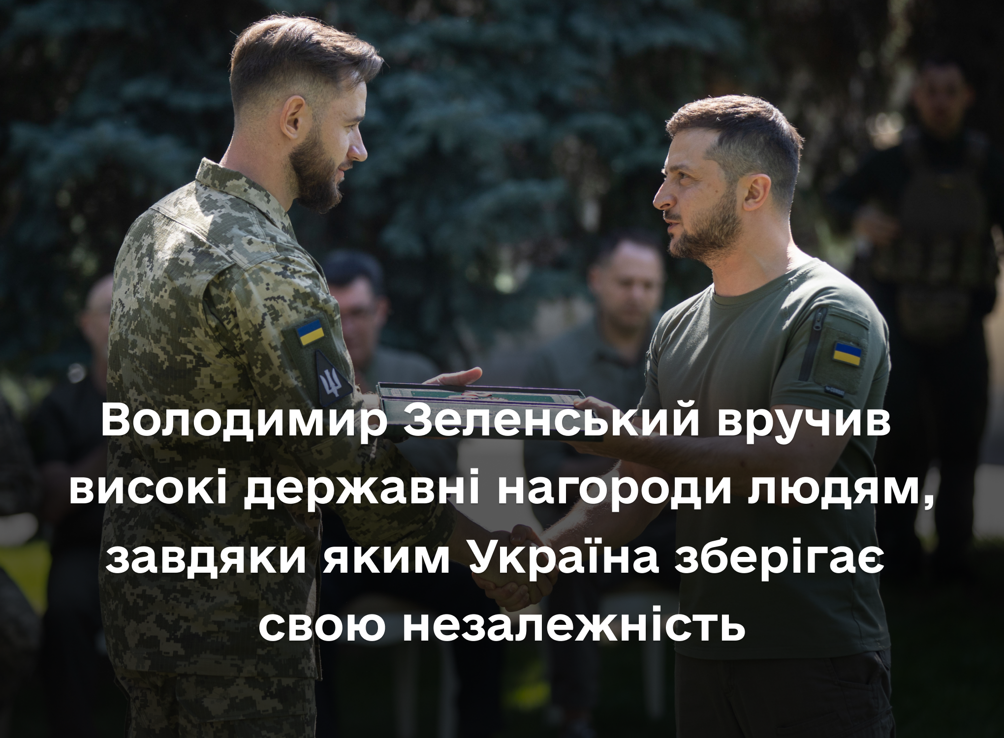 З нагоди Дня Незалежності України Президент Володимир Зеленський вручив ордени «Золота Зірка» військовослужбовцям, яким присвоєно звання Героя України, і членам родин загиблих Героїв, а також інші державні нагороди.