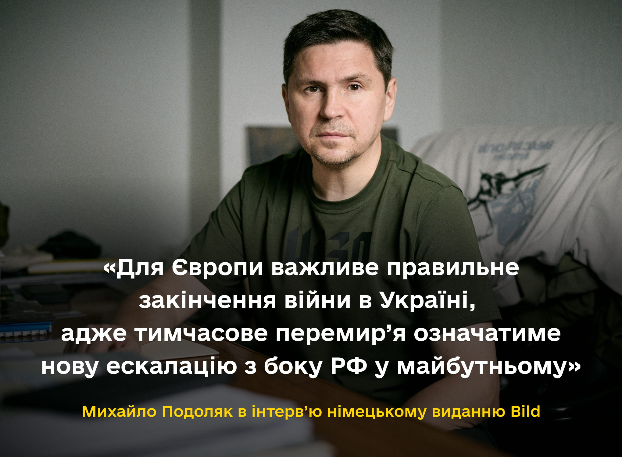 Переговорний процес із Росією щодо припинення війни зараз є невигідним як для України, так і для Європи, оскільки будь-яке тимчасове перемир’я означатиме продовження агресії з боку Російської Федерації в майбутньому. Про це заявив радник керівника Офісу Президента України Михайло Подоляк в інтерв’ю німецькому виданню Bild.