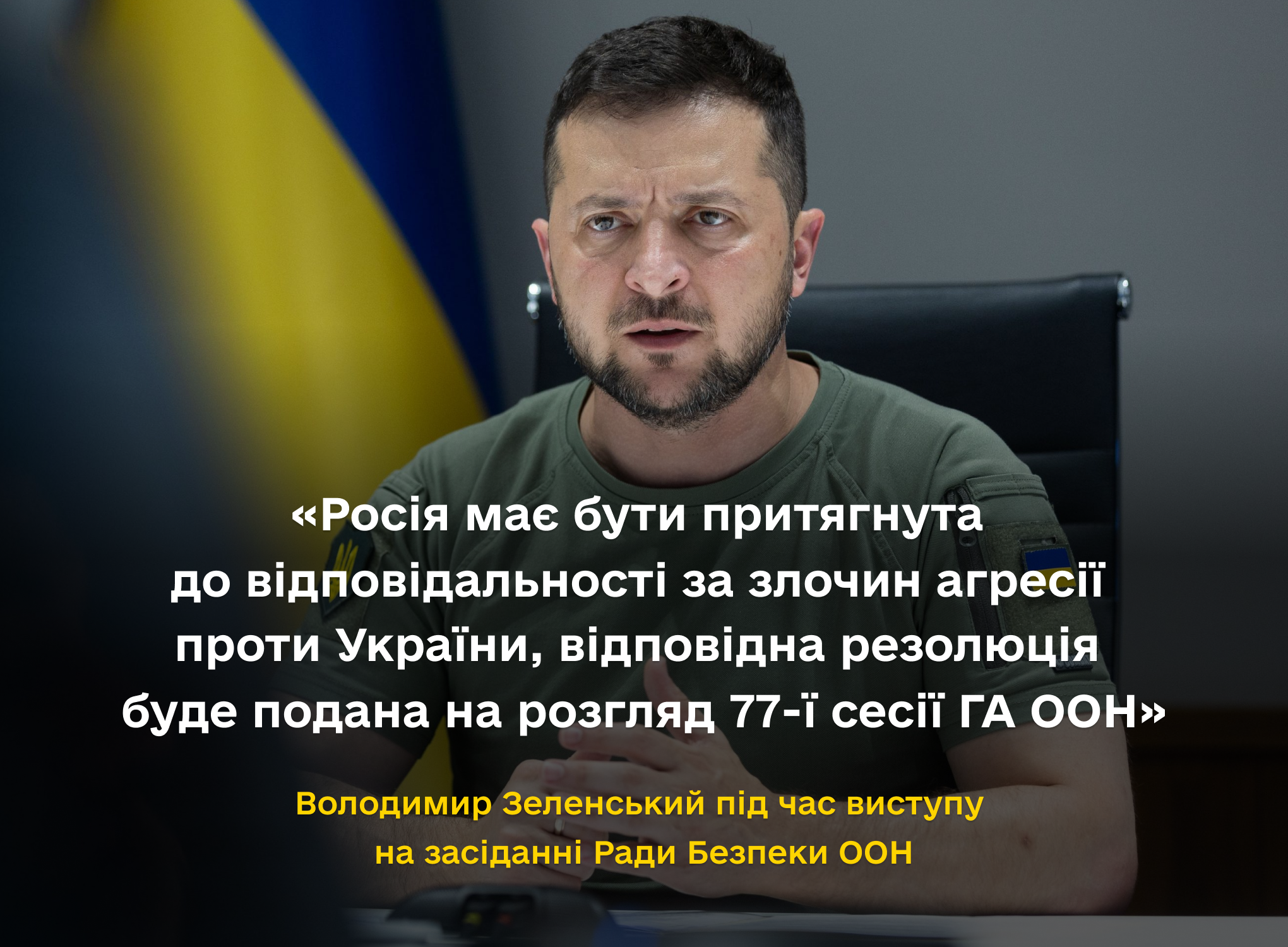 Президент Володимир Зеленський виступив на засіданні Ради Безпеки ООН, присвяченому підтриманню миру та безпеки в Україні, і закликав учасників притягнути Росію до відповідальності за злочин агресії проти нашої держави.