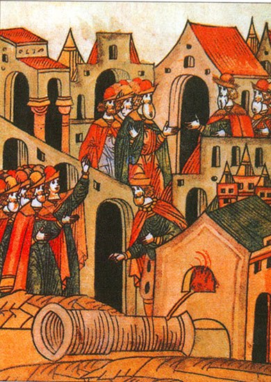 на иллюстрации: Пушка, отлитая в Москве в конце XV века. Миниатюра Лицевого летописного свода середины XVI в.1963 ГОД. ОЧАКОВ НА ОТКРЫТКАХ.