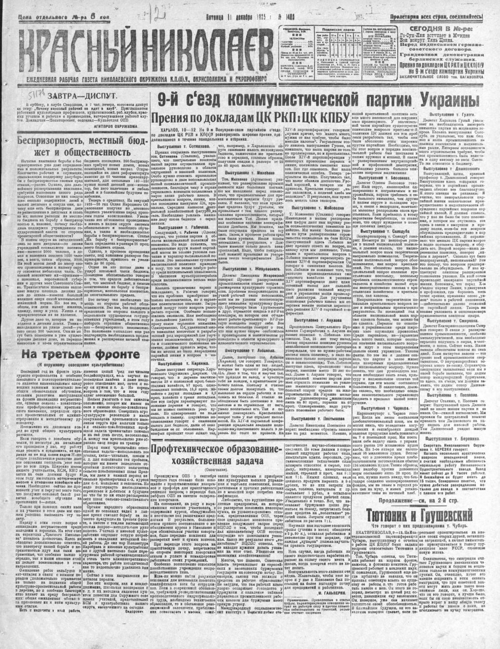 Газета “Красный Николаев” №1480 Пятница 11 декабря 1925 года. 🗓 История Очакова