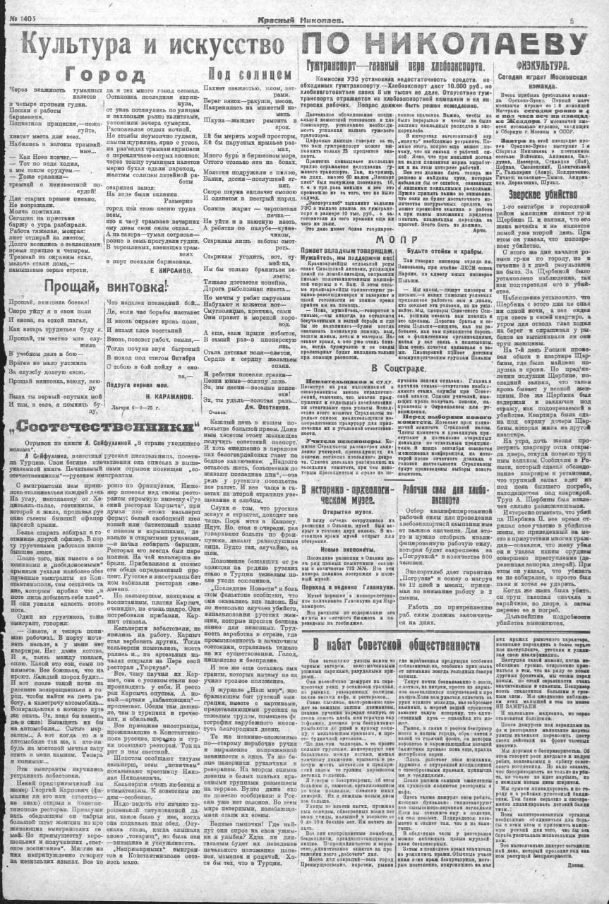 Красный Николаев №1403 Пятница 11 сентября 1925 года.История Очакова