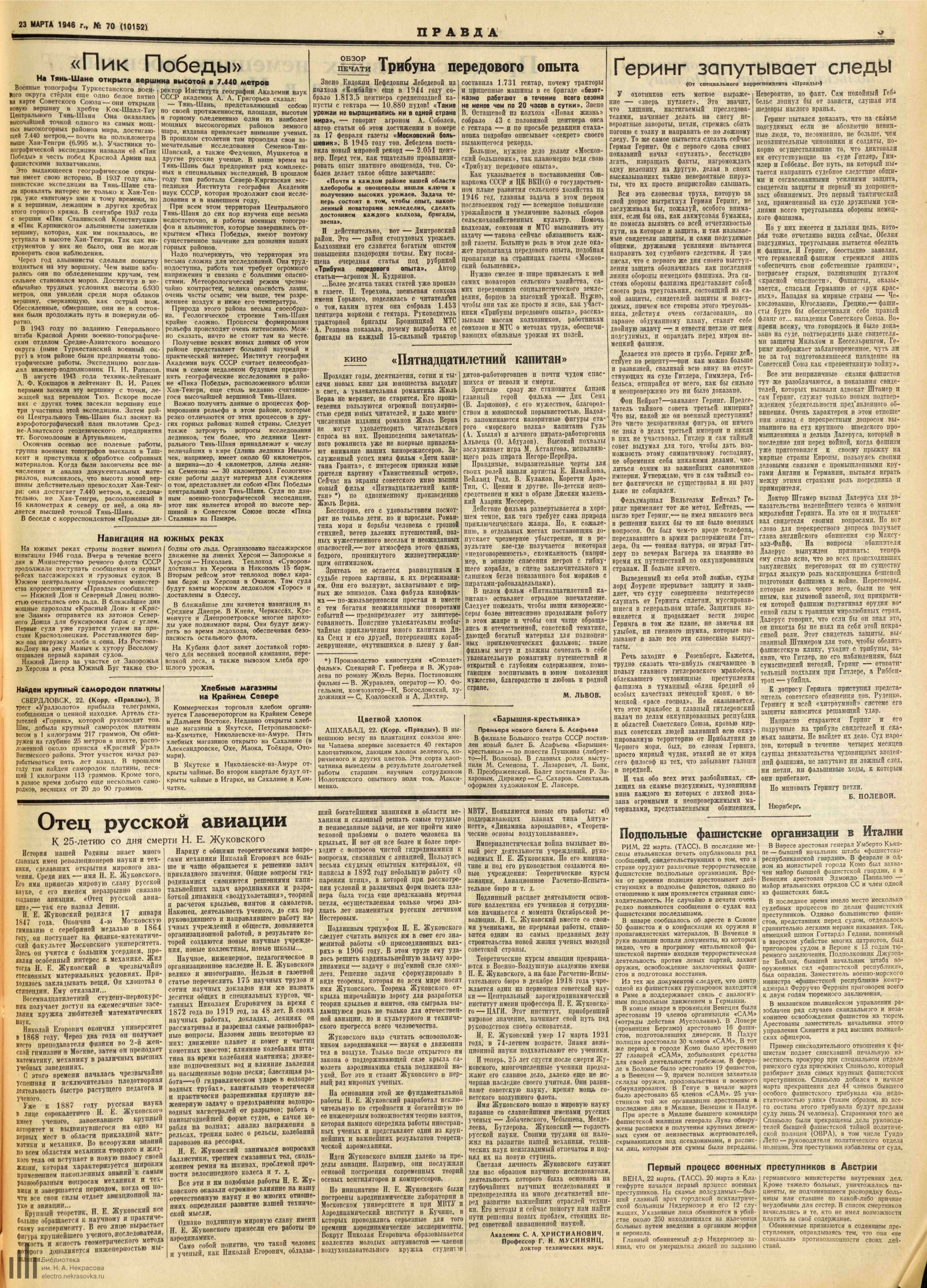 Газета "Правда" № 70 (10152), 23 марта 1946 год.История Очакова | Написать админу