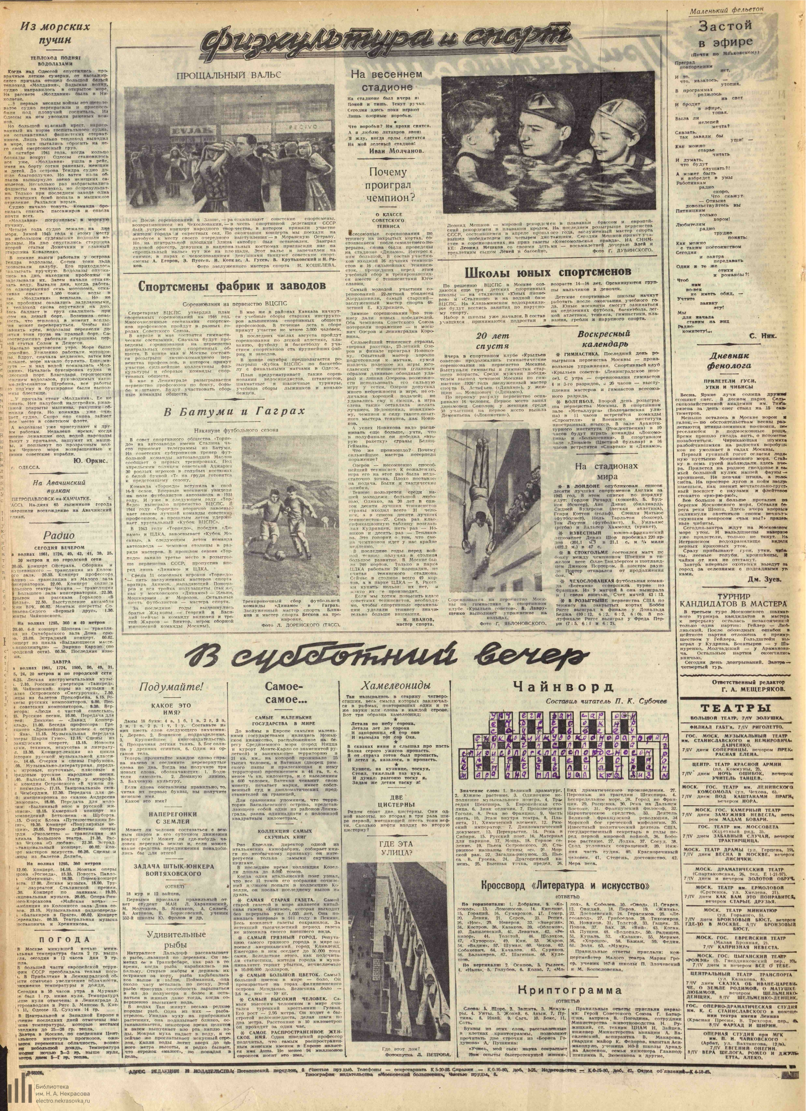 Вечерняя Москва, газета Московского городского комитета ВКП(б) и Моссовета, 1946, № 82 (6753), 6 апреляНаходки из оцифрованных фондов Библиотеки им. Н.А. Некрасова