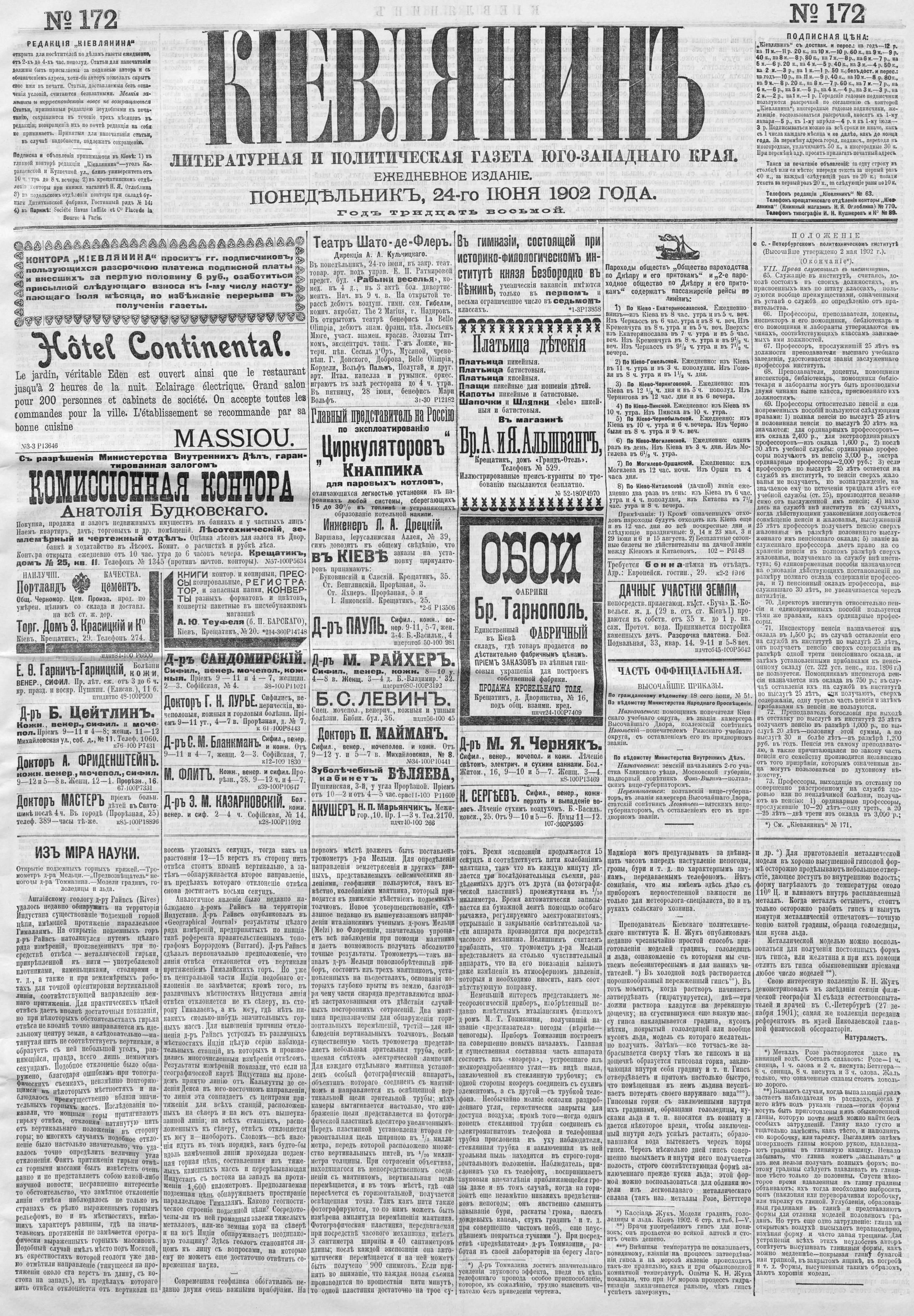 Газета "Киевлянин" № 172 Понедельник 24-го июня, 1902 года.Жду Ваших комментариев по поводу этого любопытного явления