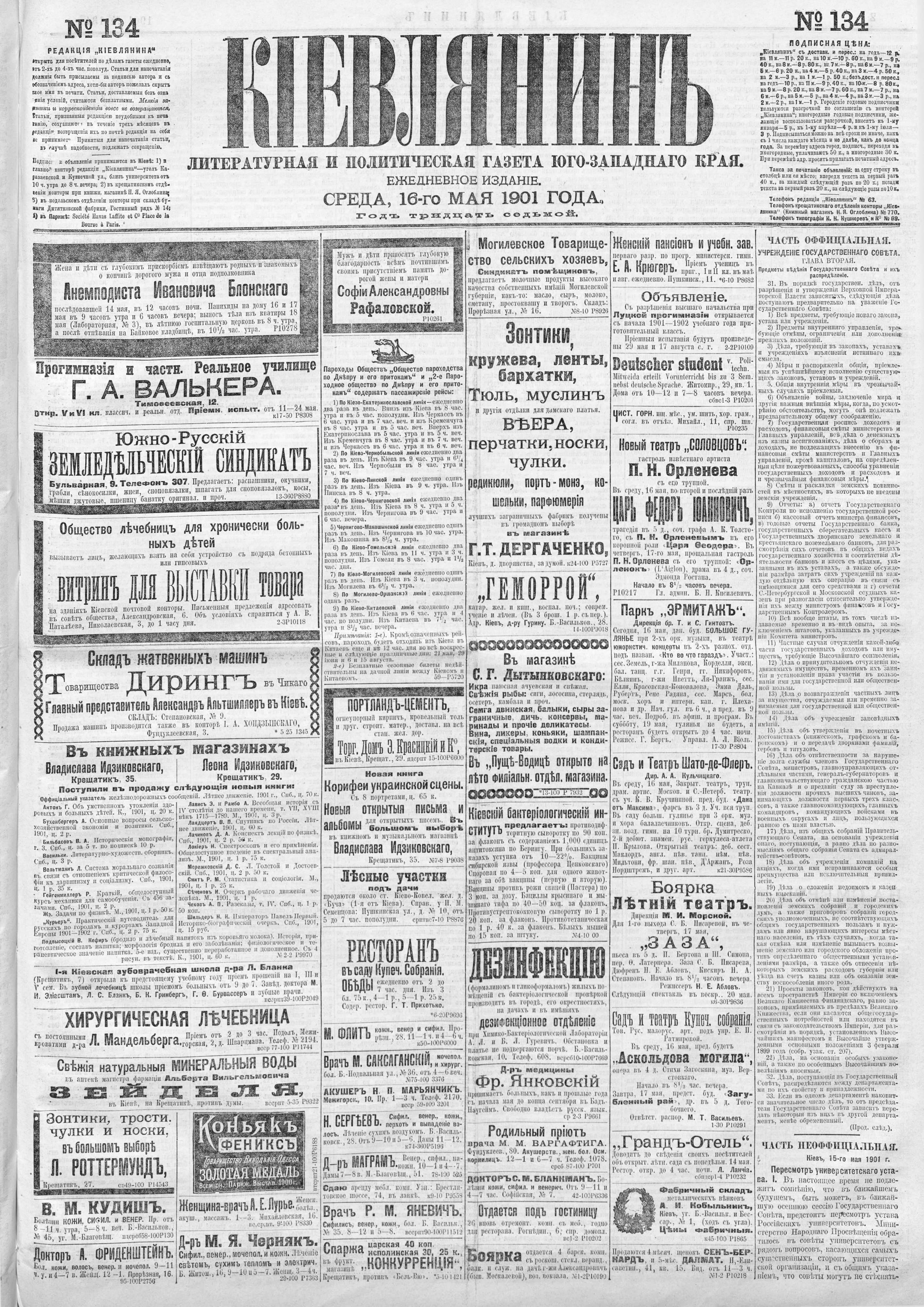 Газета "Киевлянин" №134 Среда 16-го мая 1901 года.🗓 История Очакова