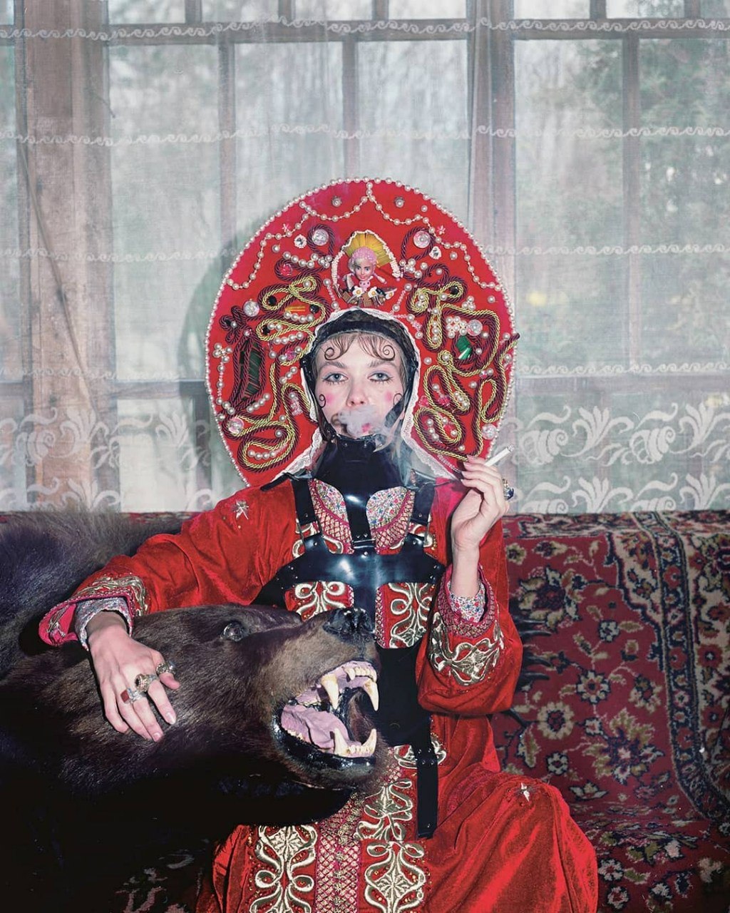 «Чаще всего это военный – моряк в бескозырке и тельняшке, десантник в берете, с автоматом и с орденом на груди или просто человек в условной военной форме рядом с ракетой «Тополь», а также богатырь с чертами мультяшного Добрыни Никитича».