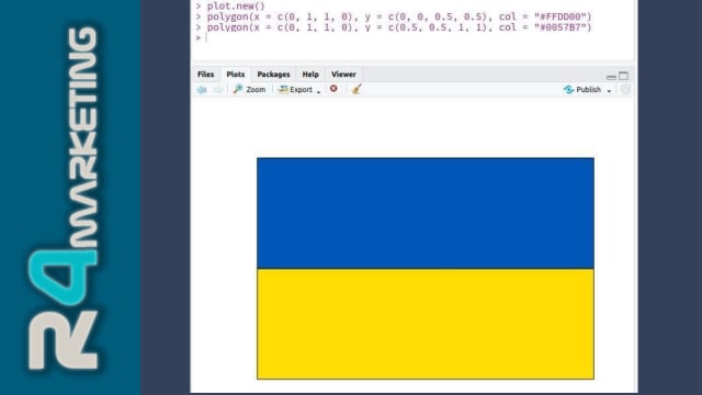 На сегодня у меня была запланирована публикация нового видео урока, но сейчас он не имеет никакого значения, поэтому я просто оставлю тут код, с помощью которого вы в R можете на графике изобразить флаг Украины.