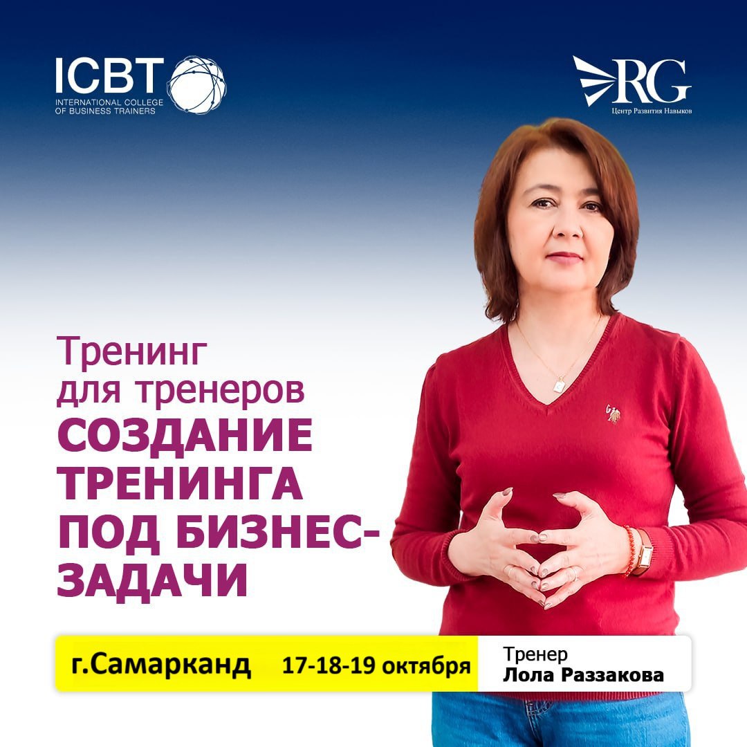 🌟 Тренер - Лола Раззакова – аккредитованный бизнес-тренер ICBT по странам СНГ, коуч, фасилитатор.