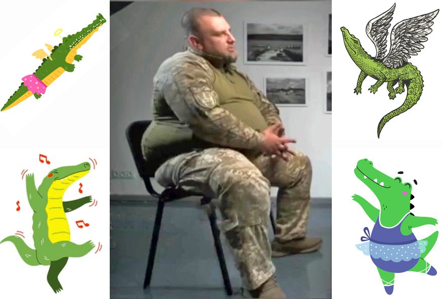 Украинские патриоты - это бородатые дяди в милитари тряпках, которые любят рассказывать в интервью о том, что они задумали. Конкретно эта говорящая куча свиного холодца хочет запустить в пограничную реку Тиса крокодилов, чтобы они хавали уплывающих уклонистов. Дядя тоже не дурак похавать и после интервью он схавал журналиста. Видео не выкладываю, а то забанят.