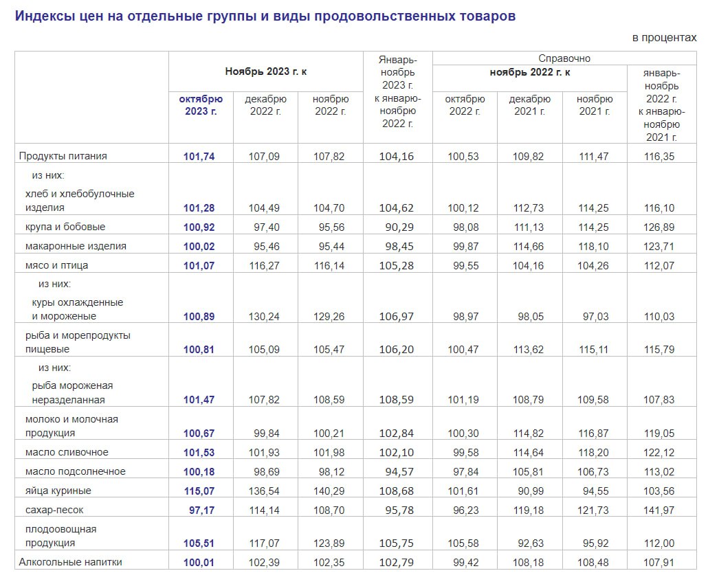 А вообще, если верить Росстату, в ноябре против ноября прошлого года подешевели макароны, крупы, подсолнечное масло, практически не подорожало молоко. Общая продовольственная инфляция по данным Росстата за год составила 7,82%