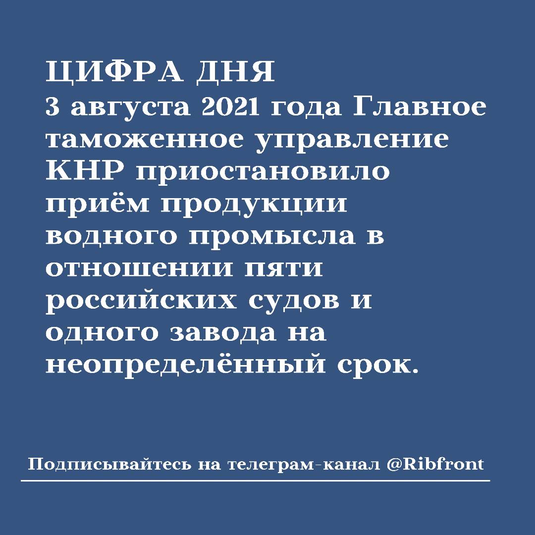 С 3 августа Главное таможенное управление КНР приостановило на неопределённый срок приём продукции водного промысла с ряда российских рыбоперерабатывающих предприятий и судов.