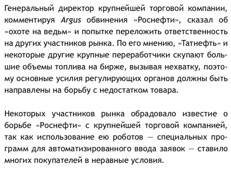 Таким образом, в совсем недалеком будущем в условиях повышенной выработки, обязательств по отгрузке крупных объемов на внутренний рынок, приближающихся длительных выходных и по окончании удовлетворения потребностей других ВИНК, можно говорить о возобновлени свободной реализации (возможно временной) и/или послабления выдвинутых требований к СПБМТСБ (https://xn--r1a.website/Ru_lio/836).