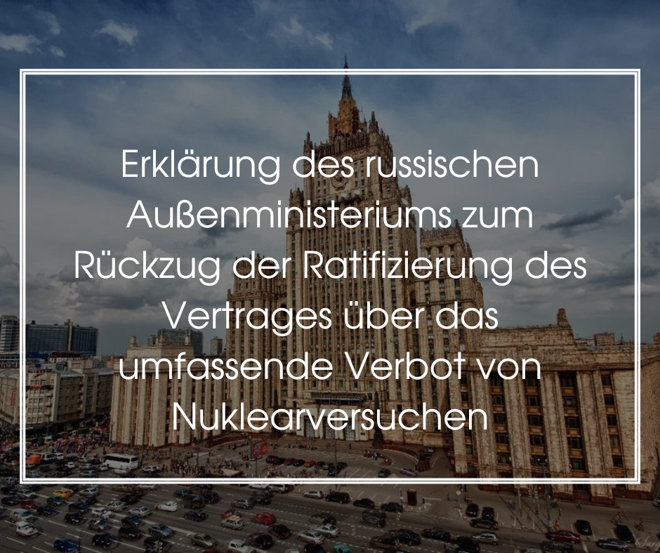 ❗ Erklärung des russischen Außenministeriums zum Rückzug der Ratifizierung des Vertrages über das umfassende Verbot von Nuklearversuchen