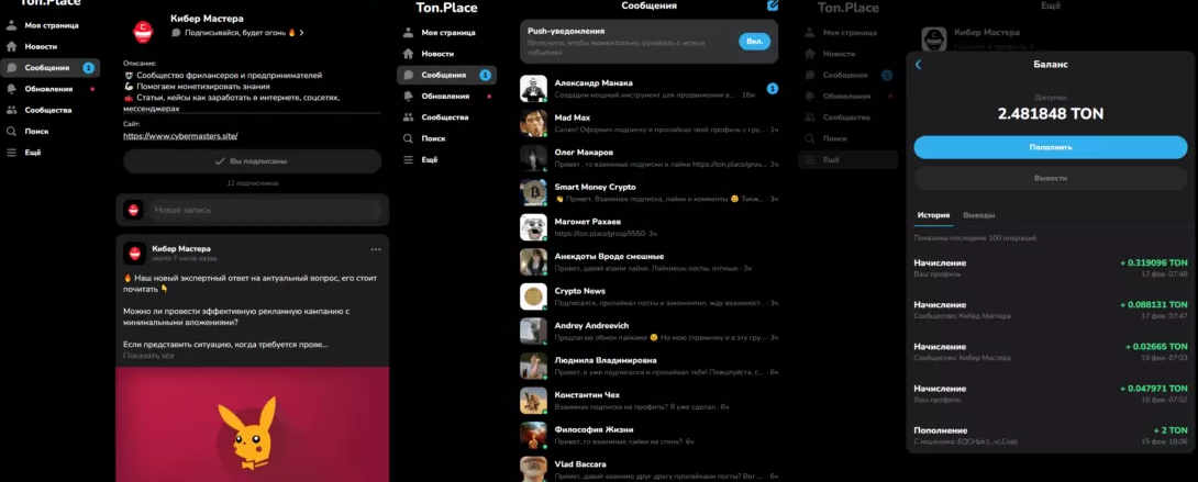 Как заработать в социальной сети ton.place