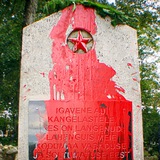 В #ДеньПобеды преступники облили неизвестной жидкостью обелиск на советском воинском кладбище в г.Аллинге, Дания. В 2022 г. памятник раскрасили в сине-желтые цвета. Вандалы так и не были найдены.