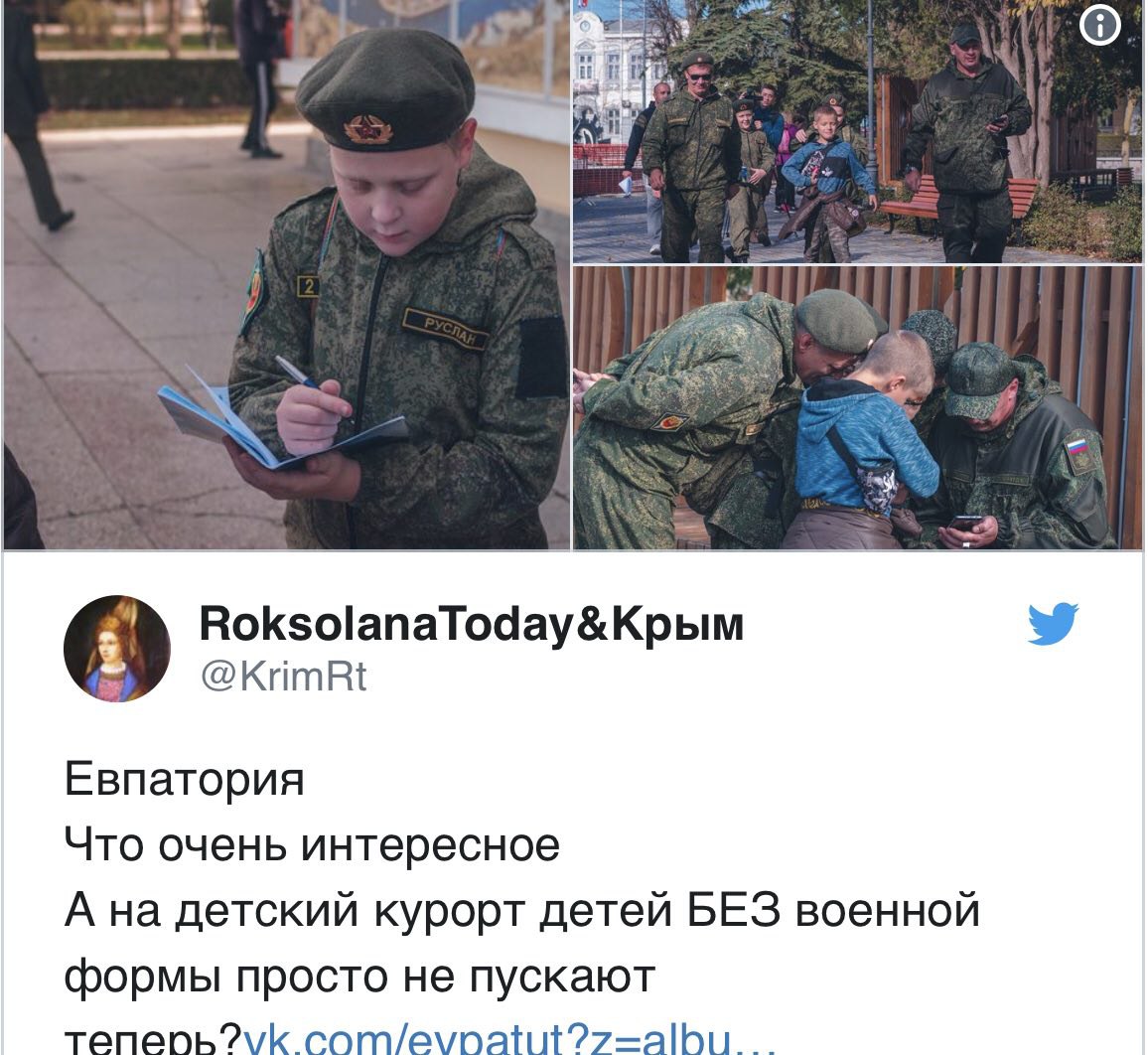 Какой-то массовый разрыв пуканов в украинских твиттерах по поводу крымских детских лагерей, в которых дети (о Боже!) носят военную форму.