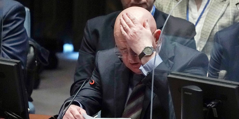 В Нью-Йорке, глава миссии России при ООН Василий Небензя 📷 начал объясняться, толкуя причины, послужившие основанием для обвинения двух официальных российских лиц в военных преступлениях.