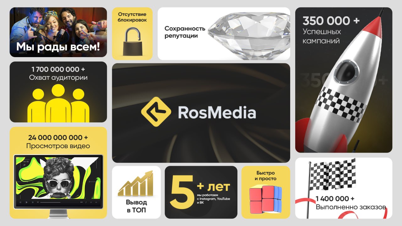 ⚡️ RosMedia — ваш надежный партнер в продвижении в социальных сетях. Сервис предлагает доступное и эффективное продвижение в таких платформах, как Telegram, YouTube, ВКонтакте и других.