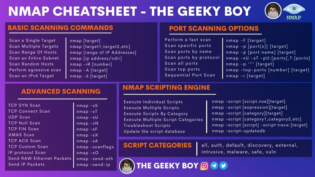 ‼️ Данный Cheat Sheet был создан автором отличного ресурса @thegeekyboy1, если информация была полезной и принесла пользу, то поддержите автора подпиской т.к. в его канале есть очень много другого полезного материала. Твой S.E.