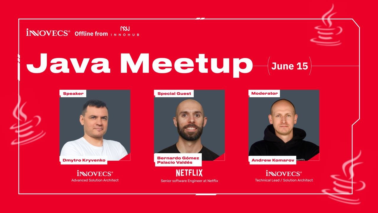 На зустрічі на вас чекають виступи топ спікерів з Netflix та Innovecs, які поділяться досвідом у програмуванні на Java та дадуть відповіді на всі ваші запитання.
