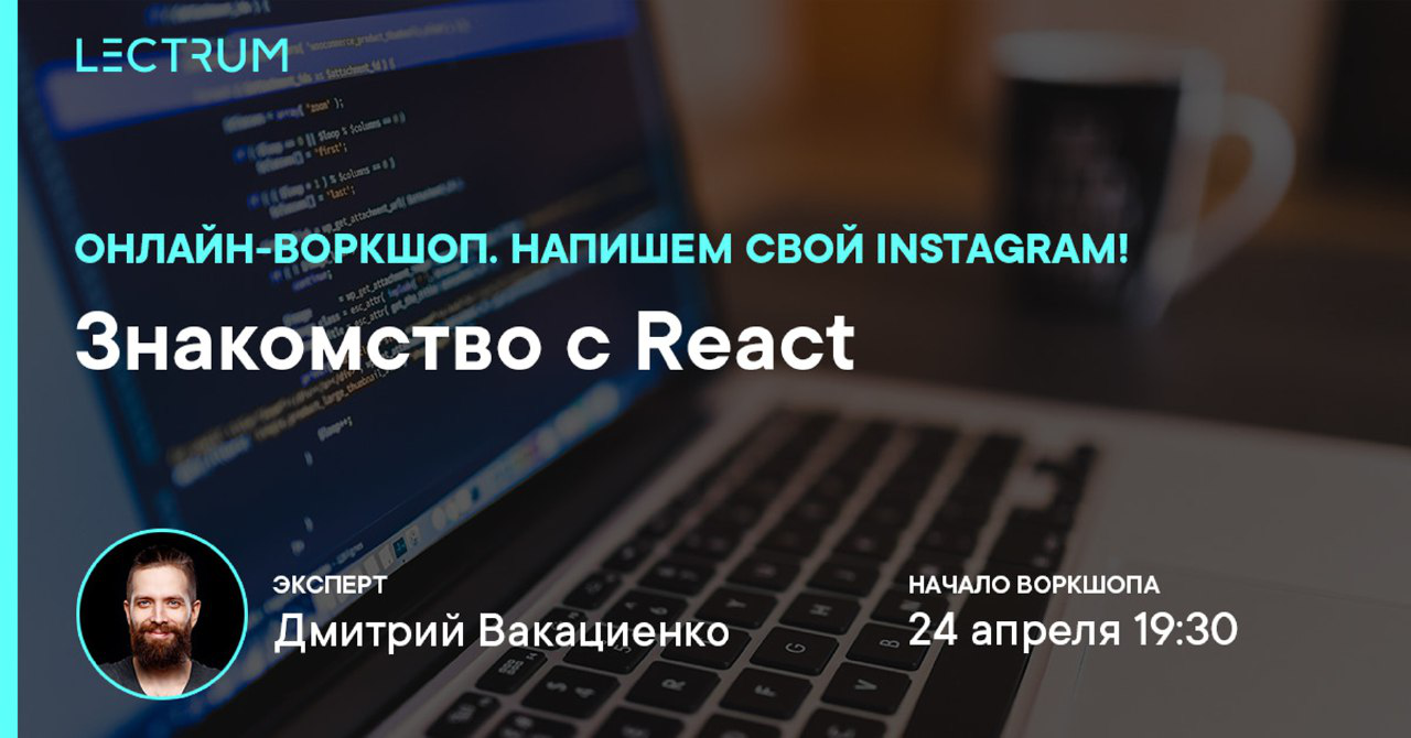 Привіт, dream team, сьогодні ми ділимося з вами івентом, який проведуть хлопці з Lectrum - онлайн-воркшоп «Знайомство з React».
