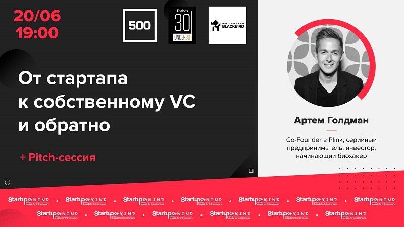 Дорогі підписники, з'явилась чудова нагода для особистого розвитку. У Startup Grind Kyiv 20 червня о 19:00 зустріч з Артемом Голдманом. Артем - Co-Founder в Plink, серійний підприємець, інвестор, початківець біохакер.