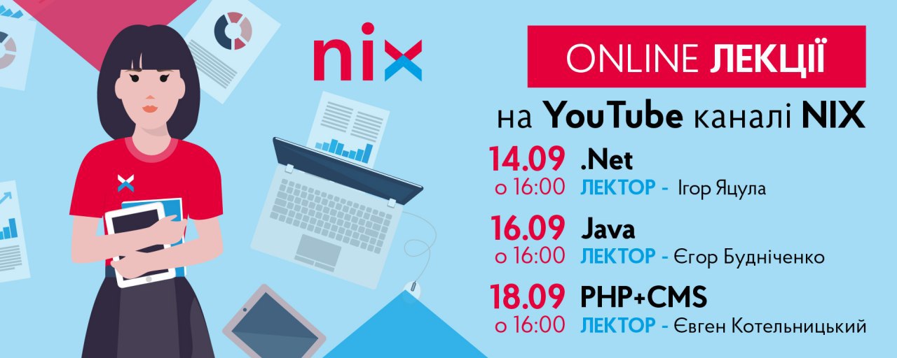 У вересні експерти NIX проводять серію онлайн-лекцій, на яких відповідають на найактуальніші питання і допомагають новачкам знайти свій шлях у IT!