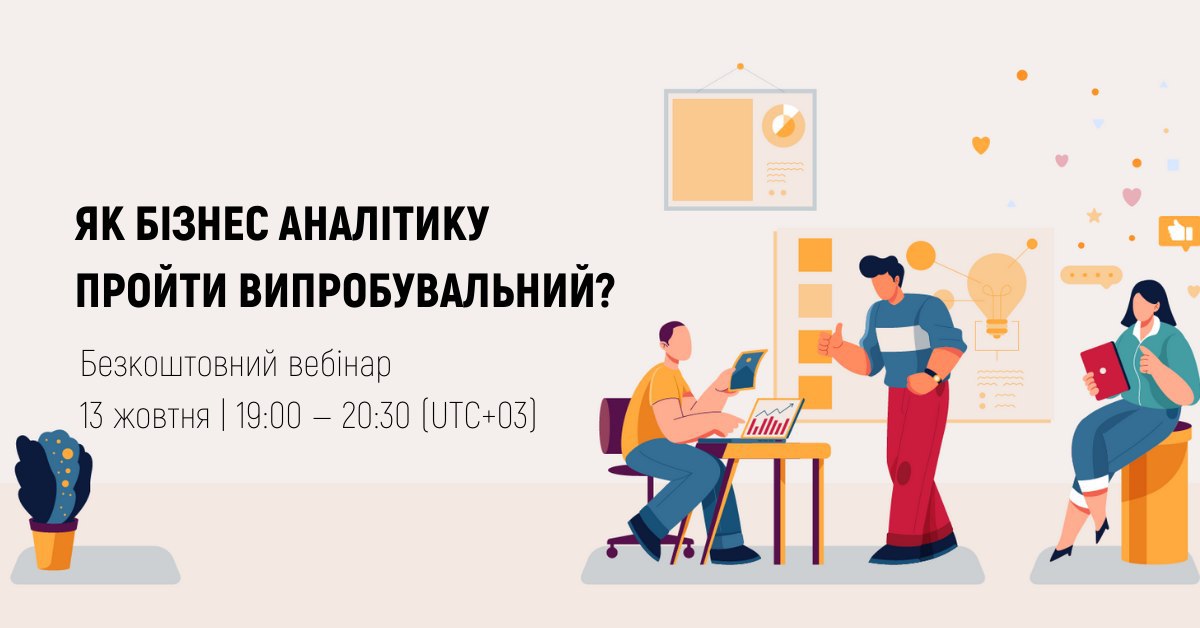 Ви стали бізнес-аналітиком? Готуйтеся: попереду кілька дуже відповідальних місяців. Як BA зрозуміти, чого саме від нього чекають, правильно побудувати відносини з колективом і успішно пройти випробувальний? Дізнаєтеся 13 жовтня на відкритому вебінарі!