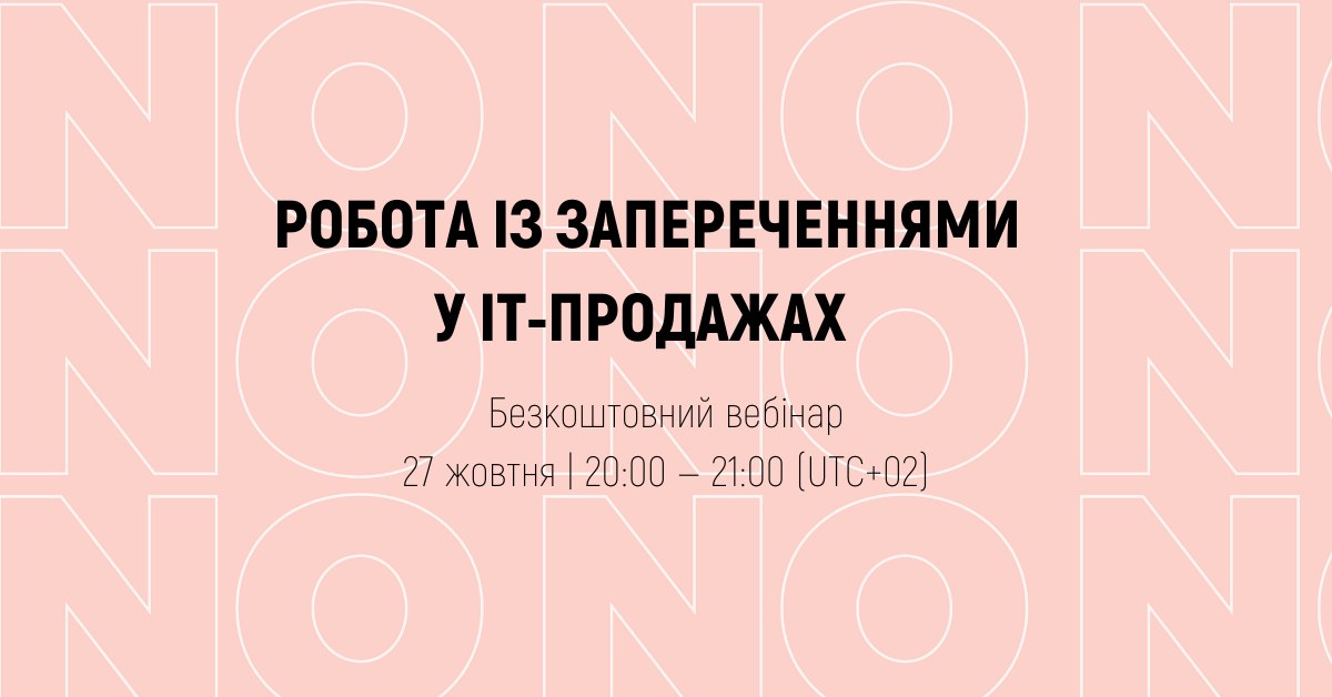 «Ні, дякую», «дорого», «не найкращий час, давайте через місяць?», «Ми вже працюємо з іншою компанією», «зараз не пріоритетно» ... Чуєте це кожен день від клієнтів? Чи не розумієте, як боротися з запереченнями, щоб конвертувати більше лідів? Як працювати з постійними «ні» на всіх етапах лідогенераціі до продажу розповімо на безкоштовному вебінарі.