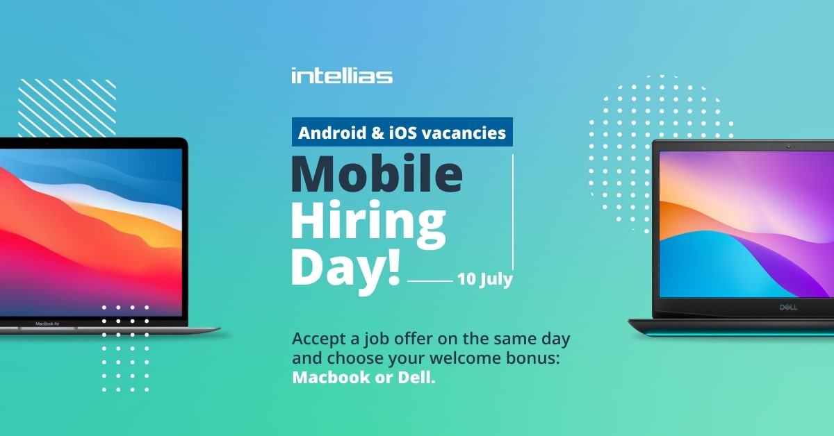 Літо закоротке, щоб витрачати його на співбесіди. Обирайте одну з Android або iOS вакансій на проєктах Intellias в рамках Mobile Hiring Day і зустрічайте захід сонця з офером та новим ноутом, модель якого оберете ви.