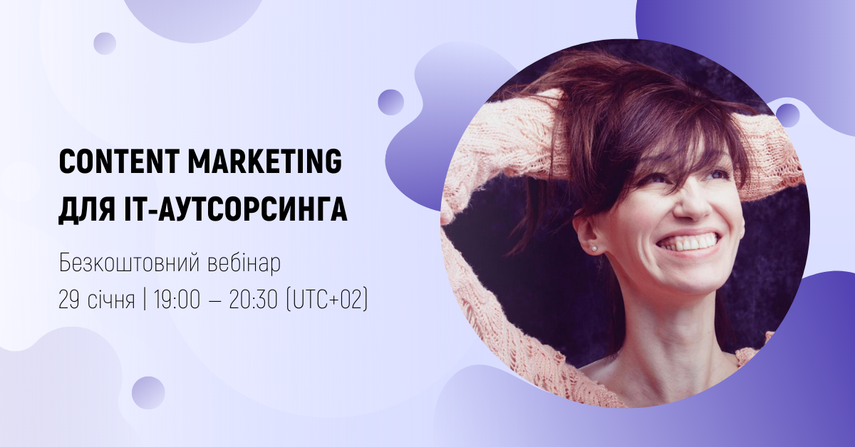 Намагаєтеся розібратися, чи потрібен вашій аутсорсингової компанії контент-маркетинг? А може ви — копірайтер або маркетолог, який не розуміє, як досягти поставлених KPI? 29 січня на безкоштовному вебінарі від IAMPM Євгенія Немкова розповість, як системно просувати аутсорсинг контентом і впливати на продажу.
