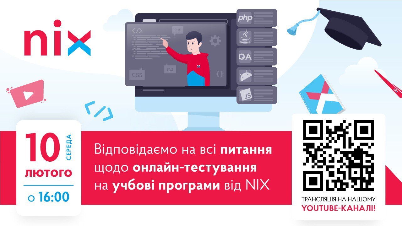 Слідом з 15 лютого записуйся на онлайн-тестування на курси NIX.