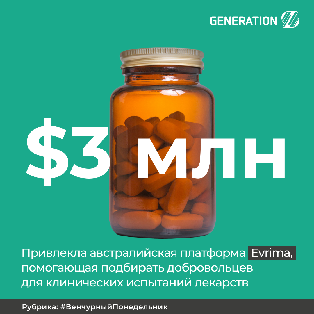 💊Австралийская платформа Evrima, упрощающая поиск добровольцев для клинических исследований новых лекарств, подняла $3 млн. Обычно более 80% испытаний задерживаются из-за отсутствия подходящих людей. За время пандемии компания выросла втрое и вышла на рынок США.