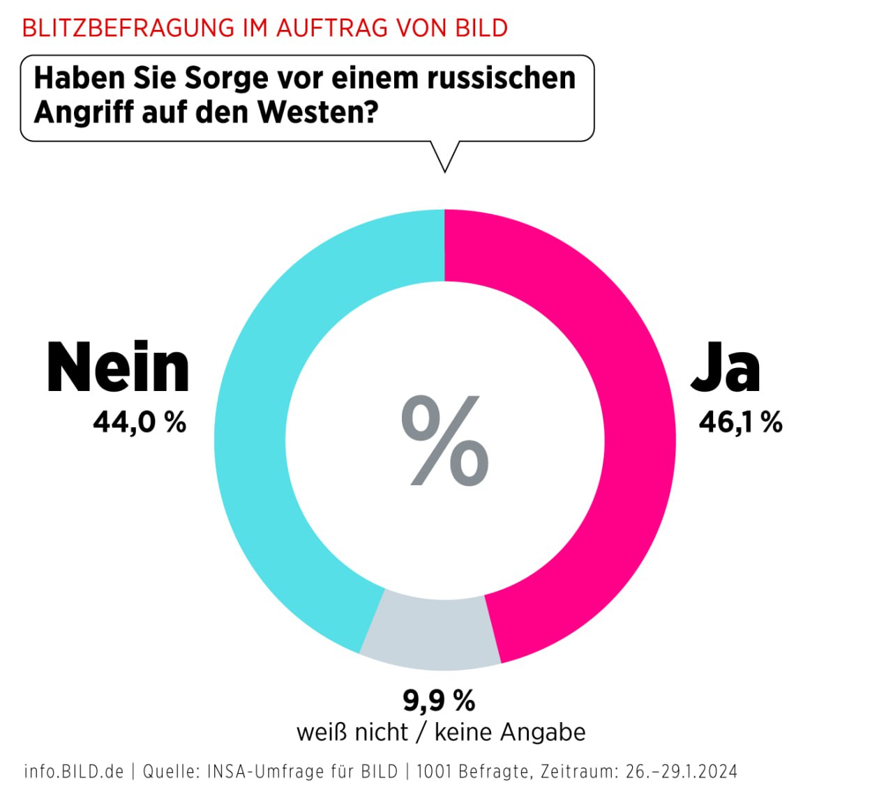 ⬇️Бонус. Согласно последнему немецкому опросу INSA, 46% немцев опасаются нападения России. 44% ответили, что нет.