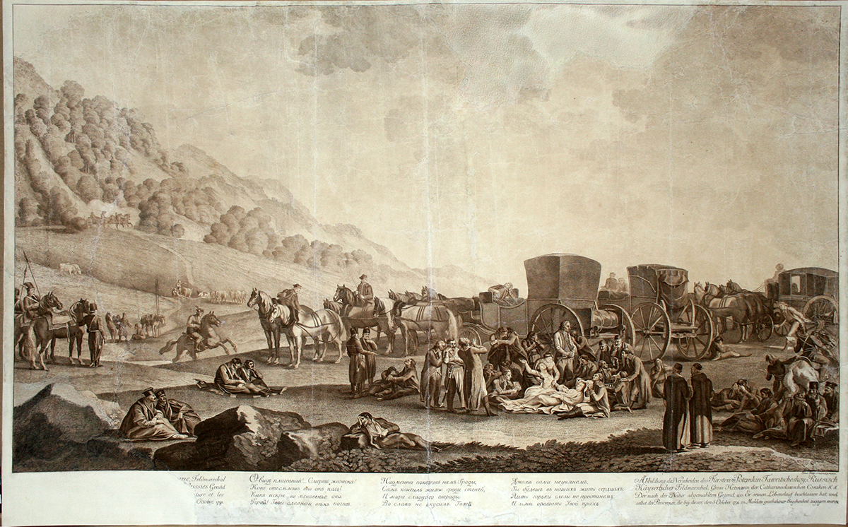 Рисунок «Смерть князя Г.А. Потёмкина-Таврического». Г.И. Скородумов с картины М.М. Иванова. XIX в. Россия.