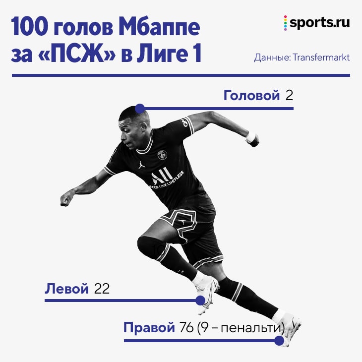 • Мбаппе всего 22 – он уже забил сотню только за «ПСЖ» (и только в Лиге 1). Темп просто бешенный.