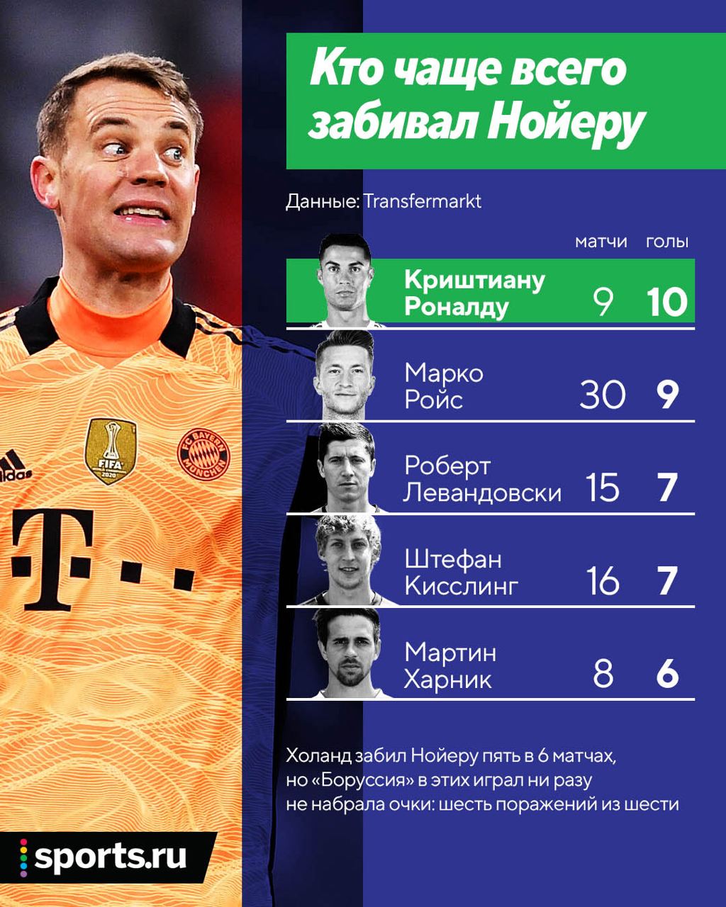 В качестве мини-анонса – стата по Нойеру. Список возглавляет Криштиану, который никогда не играл в Бундеслиге.