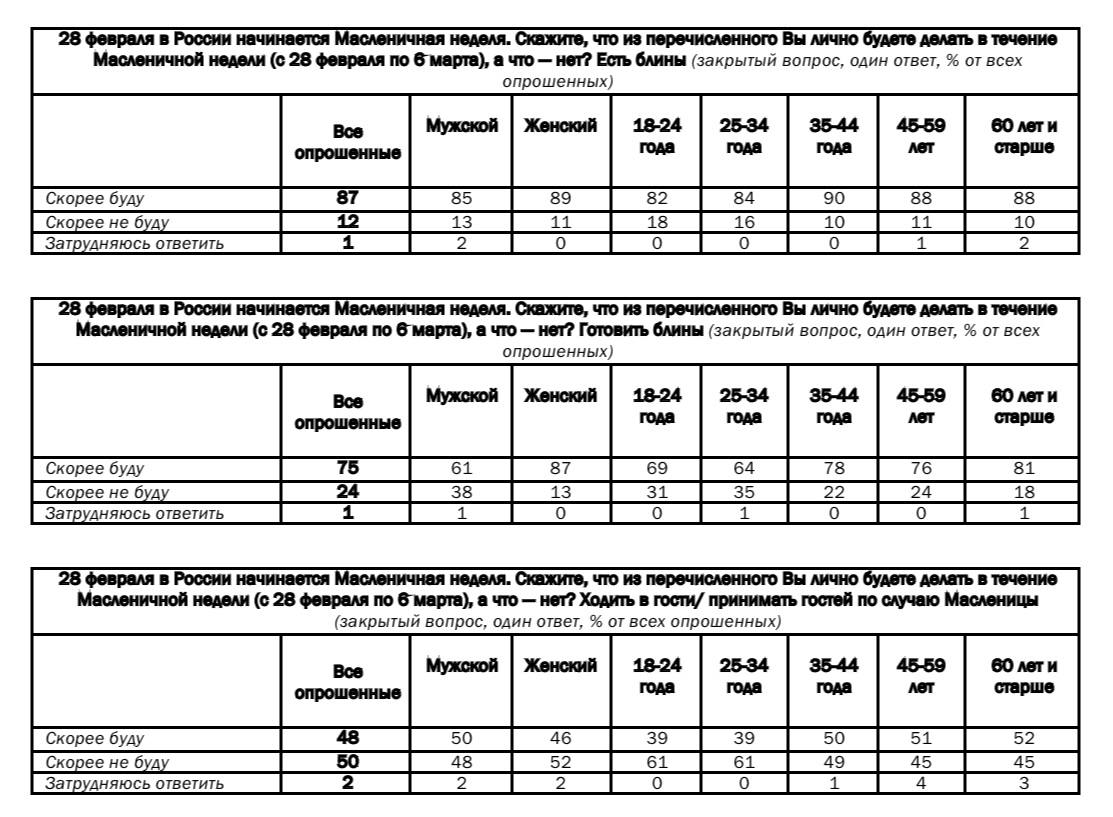 Будут сами печь блины три четверти наших сограждан (75%). Среди женщин этим займутся 87%, а среди мужчин — 61%.