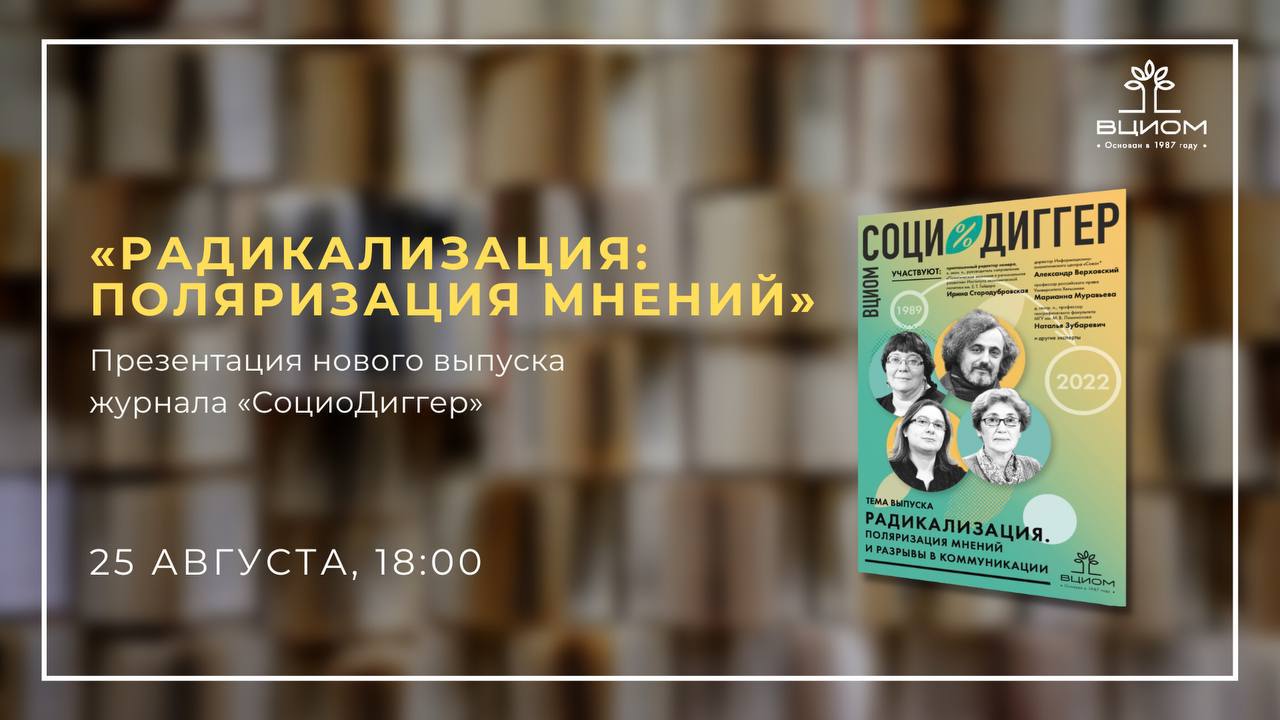 Сегодня в 18:00 на площадке ВЦИОМ состоится презентация выпуска журнала «СоциоДиггер» на тему «Радикализация: поляризация мнений».