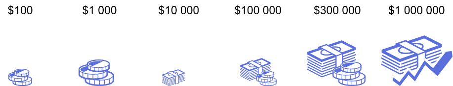 4️⃣ Капитал до $100 000. Средний класс в привычном понимании развитых стран. Нет тревоги за завтрашний день. И даже за следующий год. Выстроенная стратегия формирования капитала. Каждый новый день приносит дополнительное богатство.
