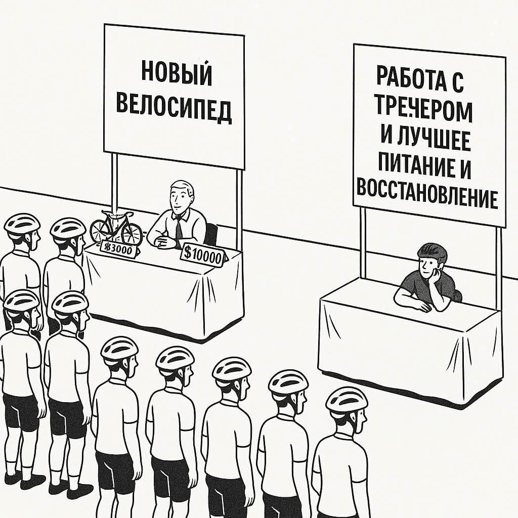 Человек купил себе новый велосипед за 10 000€ (со скидкой). При этом, он экономит на тренере, отказываясь от его услуг на зимний сезон.