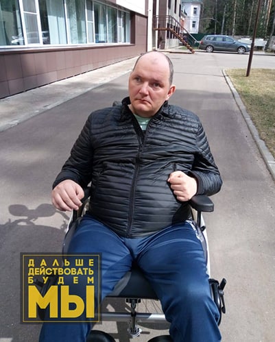 Уже пять лет Евгений передвигается в специальном инвалидном кресле. Ещё два года назад тело мужчины было полностью парализовано: он не мог двигать ни руками, ни ногами. С нашей помощью он прошёл реабилитацию — и есть успехи. Евгений может помахать правой рукой, понемногу разрабатывает ноги, ему удаётся сидеть без опоры и держать равновесие.