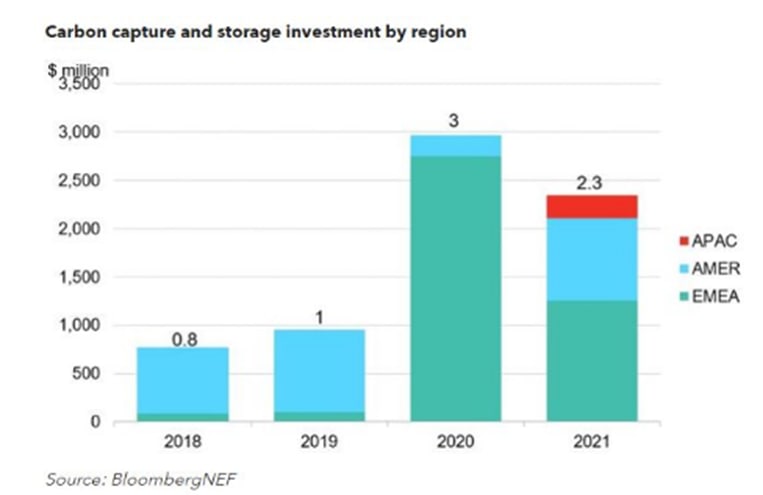 Мировые инвестиции в улавливание и хранение углерода в 2021 г. упали до $2,3 млрд